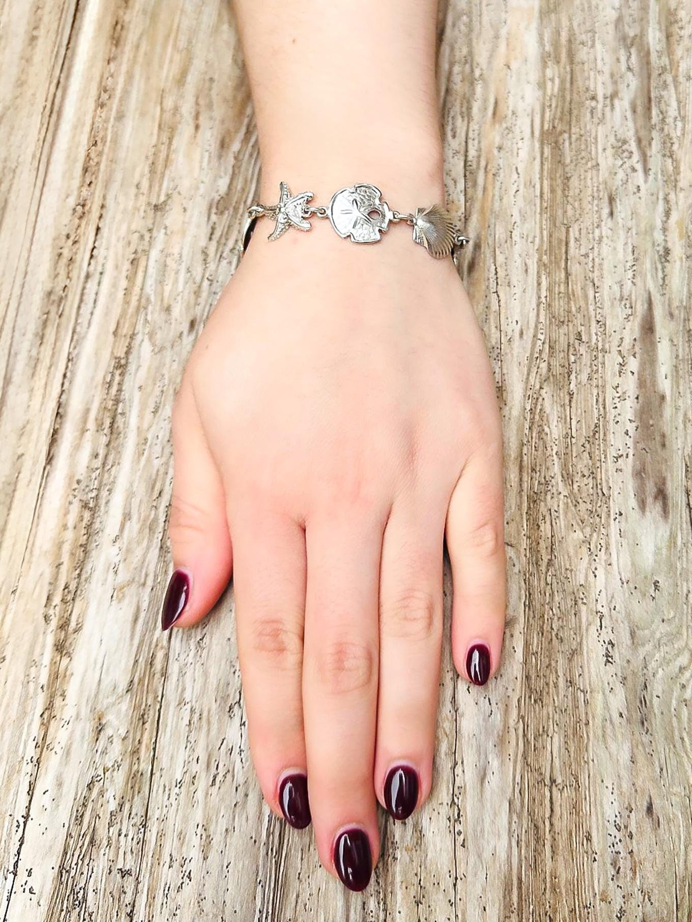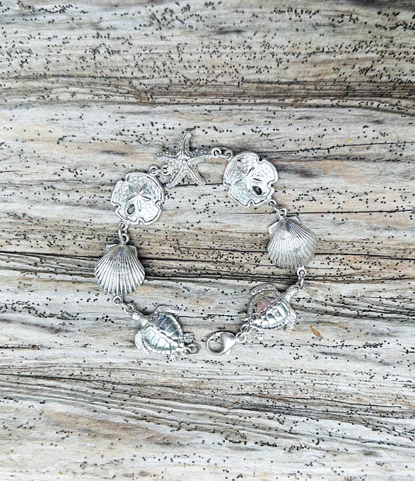 Discover the wonders of the ocean with our stunning "Ocean Treasures Bracelet," a wearable collection of marine charms that celebrate the beauty of coastal life. Handcrafted from 92.5% sterling silver, this bracelet features detailed sand dollars, starfish, seashells, and sea turtles, each charm carefully made from scratch and soldered individually for a flawless finish. Inspired by the peaceful rhythm of the sea, this bracelet embodies both elegance and craftsmanship, perfect for anyone with a love for nature’s coastal treasures. Unlike most jewelry companies, we take pride in handcrafting each order as it is received, investing time and care into creating quality pieces that reflect our dedication to excellence from the very first look