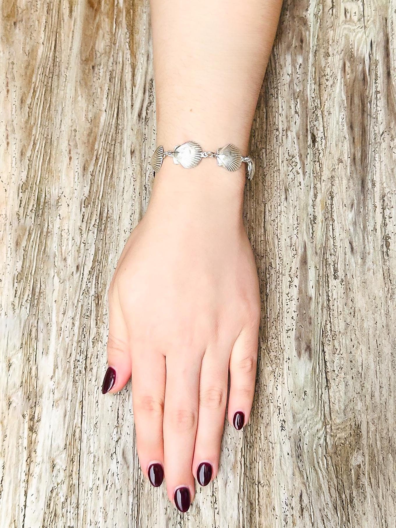 This exquisite bracelet captures the serene beauty of the ocean, featuring hand-sculpted sterling silver seashells linked together in perfect harmony. Each shell charm is individually crafted from 92.5% sterling silver, showcasing lifelike textures that evoke the peaceful rhythm of the sea. The bracelet’s timeless design makes it a versatile piece, perfect for both everyday wear and special occasions. Unlike most jewelry companies, we take pride in handcrafting each order as it is received. The time and care we invest in creating quality jewelry ensure that every piece you receive reflects our dedication to excellence from the very first look.